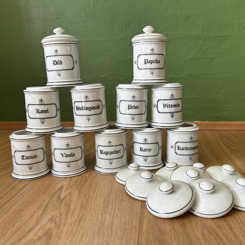 Sæt med 4 krydderikrukker i tinbelagt kobber