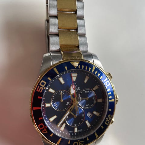 Jaguar Executive Chronograph j853/3, 2020+, schweizisk kvartsur, urkasse af rustfrit stål forgyldt, diameter 45 mm, blå skærm, safirglas, lænke af forgyldt rustfrit stål, original kasse og dokumenter inkluderet, original garanti ikke inkluderet, nytilstand. Klik på den blå "gå til varen" knap, for at købe eller byde på denne vare. Den samlede pris vil blive vist inden du afgiver dit bud.