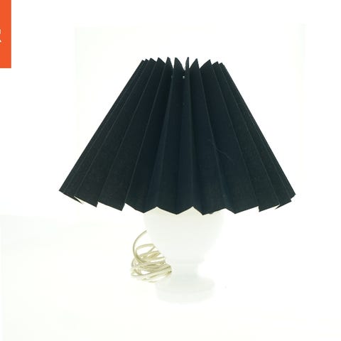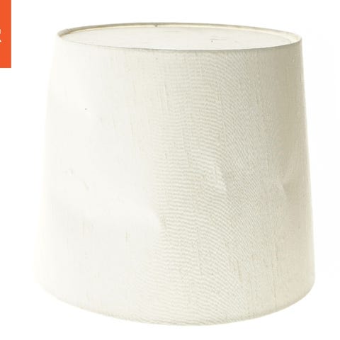 Klassisk lampeskærm med en konisk form, egnet til både bordlamper og standerlamper. Den er lavet af et lyst stofmateriale og har en diameter på cirka 35 cm og en højde på 20 cm. Lampeskærmen har en indvendig struktur, der holder formen og er designet til at passe til standard fatninger.