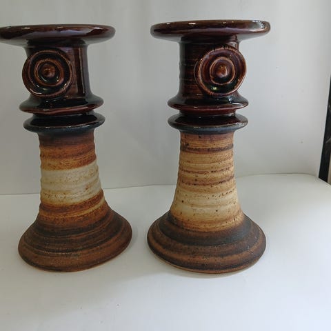 2 udsædvanlige vægstager til Ø12mm stearinlys fra Bondestuen i Tejn , Bornholm, cirka 1955-60