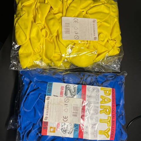 To poser indeholdende i alt 60 balloner, hver ballon måler 23 cm. Ballonerne kommer i forskellige farver: rød, blå, grøn, gul, lilla og orange. Velegnet til festlige lejligheder og dekorationer.