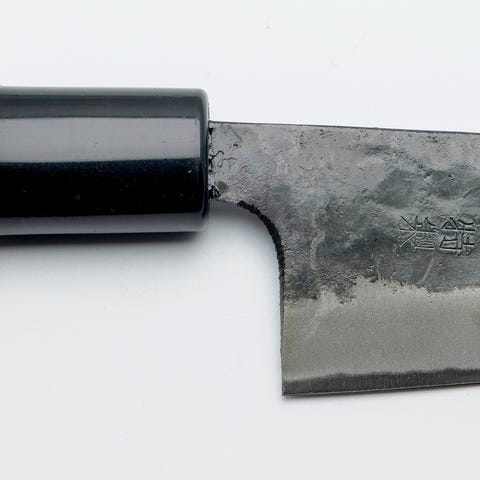 Denne robuste kokkekniv er 33 cm lang og 9 cm bred. Kniven har et bredt blad, der er ideelt til at skære store stykker kød og grøntsager. Håndtaget er solidt og giver et sikkert greb. Stålet i bladet ser ud til at være af høj kvalitet, hvilket sikrer holdbarhed og effektivitet i køkkenarbejdet.