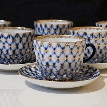 Lomonosov Porcelain Coffee Set Cobalt Net Tulip