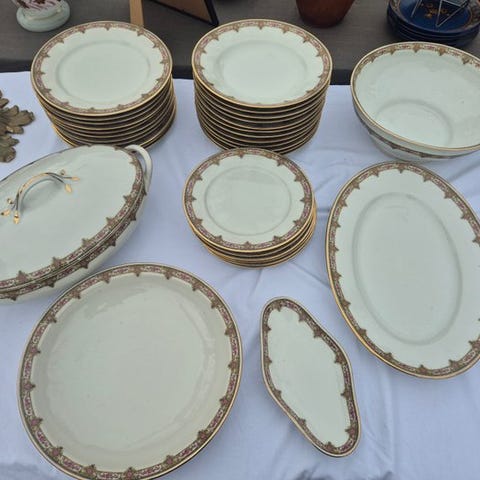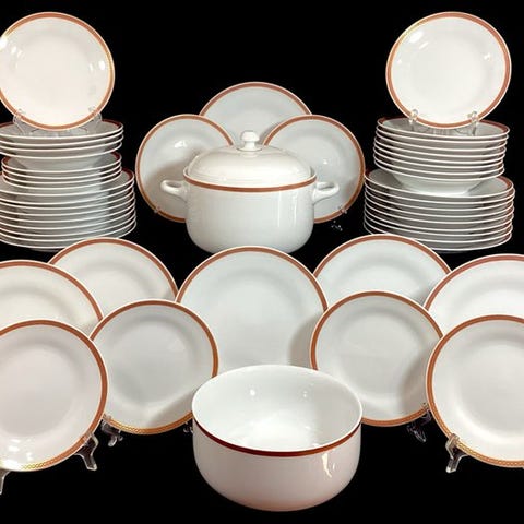 Servizio da tavola Pope-Gosser in porcellana con bordo in oro 18K – 46 pezzi – USA – metà XX secolo