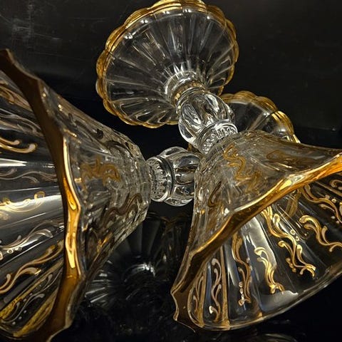 Designet er klassisk og elegant: hvidt, blankt centrum og bred gylden kant, som giver stor glans og værdighed til servisen. Denne type dekor var typisk for kvalitetsserviser produceret i USA i mellem 1950’erne og 1960’erne.