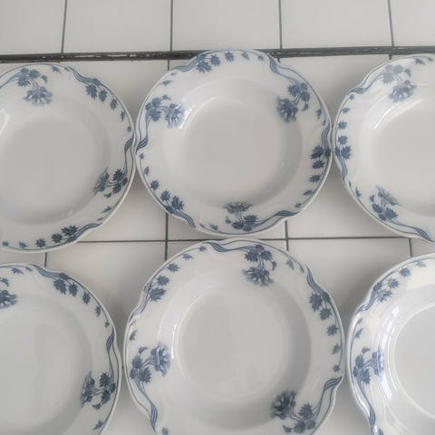 Velkommen! Vi præsenterer seks dybe tallerkener fra Meissen med motivet Blå Løg.