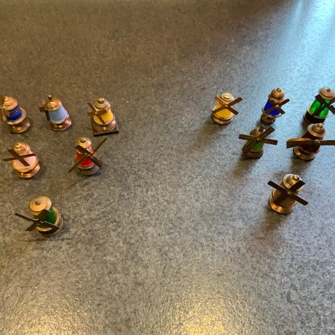 Lavet i træ og påsat en masse gamle danske kobbermønter - 1,2 og 5 ører.