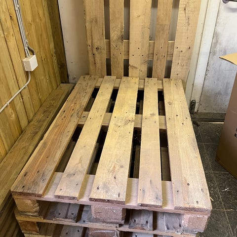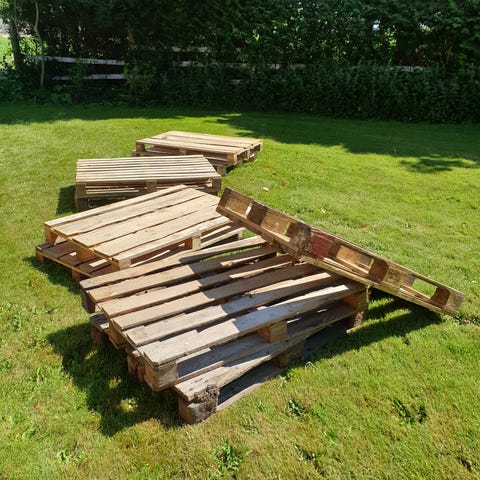 Palle / træpalle / paller af træ 80 x 305 cm, 4 stk. næsten nye engangspaller