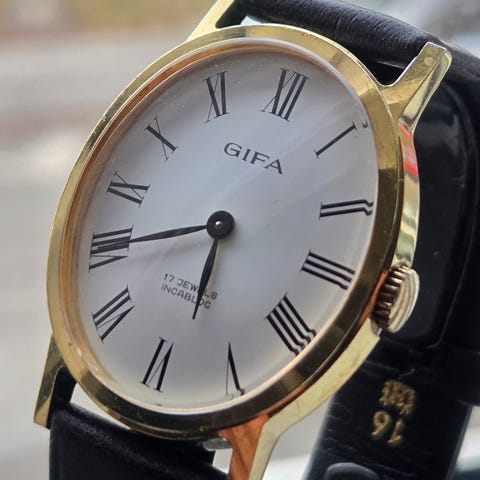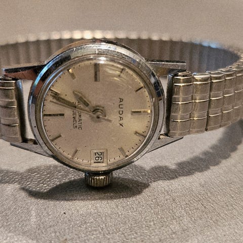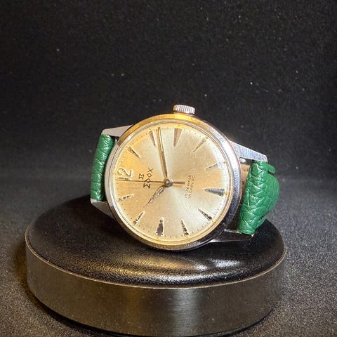Edox quartz ur i gulddouble. Måler 34 mm målt uden kronen. Mont med en ny grå læderrem fra Hirsch i gedeskind. Nyt batteri isat.