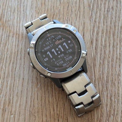 Fenix 6 Sapphire Titanium i god stand.