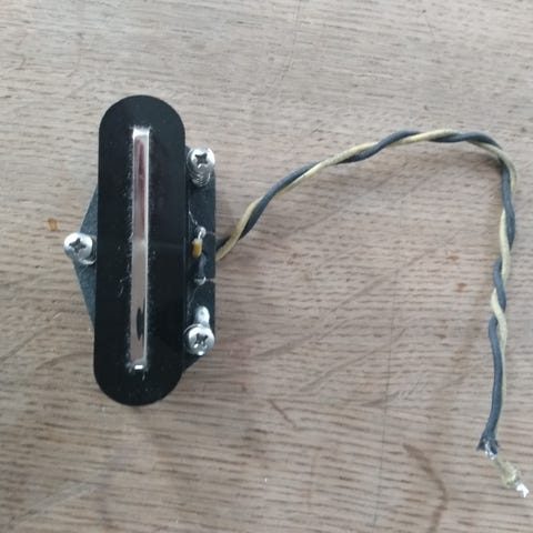 Ledningen til halspickuppen har været kortet af og er blevet forlænget igen. Der mangler også en enkelt træskrue til kropsmontering.
