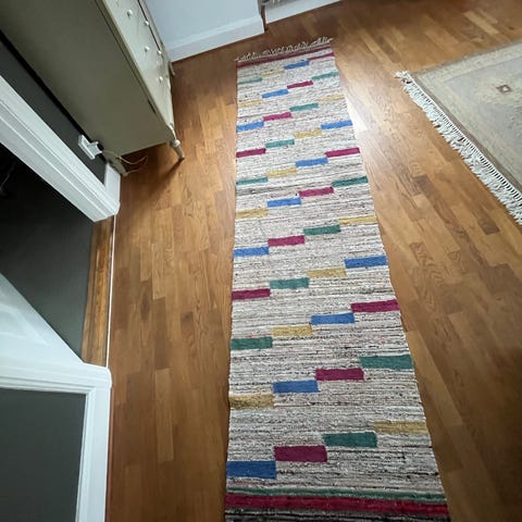 Næsten nyt - købt for en måned siden. Desværre er tæppet lidt for langt til min entre.