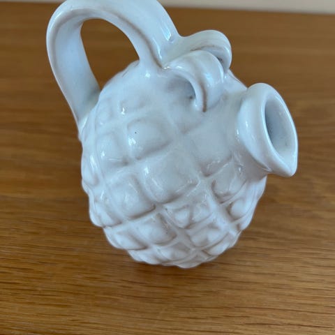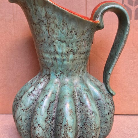 Smuk hvid græskar kande af Michael Andersen. Den er 9 cm høj og ca 10 cm bred. Sender gerne men ikke med fiksfærdig.