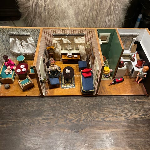 Gl. engelsk dukkehus sælges. Det måler imponerende 120 x 50 cm. og er 65 cm. højt, i typisk smuk engelsk stil.