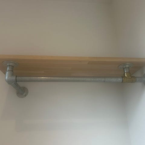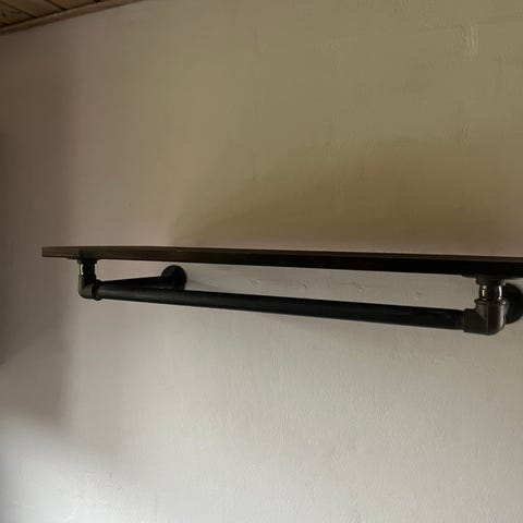 Rackbuddy hylde med bøjlestang og vandrør, hylde / hattehylde.