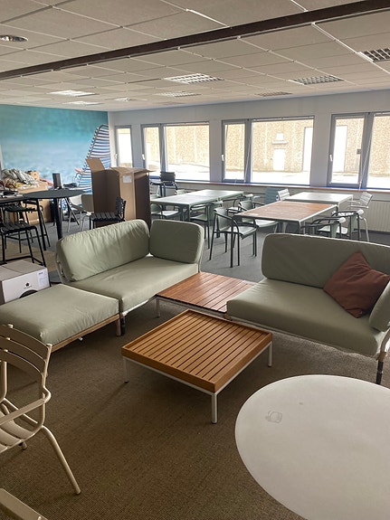 stolene er blevet brugt i en udstilling, så der kan være små håndteringsspor på dem, men de har altid stået indendøre, så de har ikke været udsat for vind og vejr.