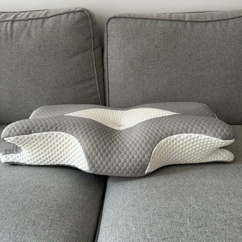 Købte puden efter at have set en reklame med danseren Silas. Den lød perfekt til mig. Men den er for høj til mig og ærligt synes jeg den lugter syntetisk. Desværre kan den ikke byttes når man først har brudt emballagen og eftersom den var rullet sammen, åbnede jeg den selvfølgelig.