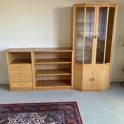 Pænt reolsystem muligvis i bøg