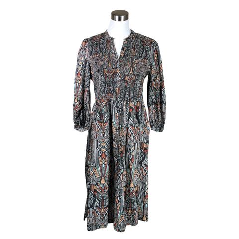 Skjulte knapper hele vejen ned og pynteknap øverst. Elastik stykke i ærmer.