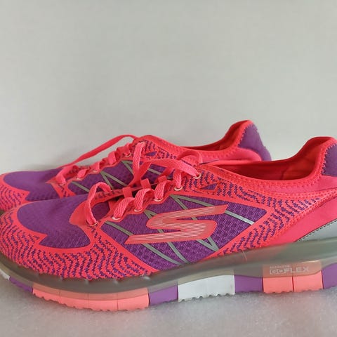 Skechers Slip-ins sneakers i størrelse 38. Modellen er i lyserød og hvid med snørelukning og Slip-ins-design, der gør det muligt at tage skoene på uden at bruge hænder. Overdelen er i mesh- og tekstilmateriale, som giver ventilation, og sålen er i gummi med mønster for greb. Velegnet som hverdagssko eller til let træning og gåture.