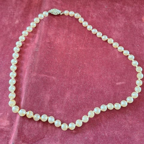 Meget sød perlekæde af små fine perler, der bliver lidt større. Måler ca. 48 cm i længden.