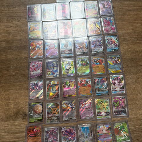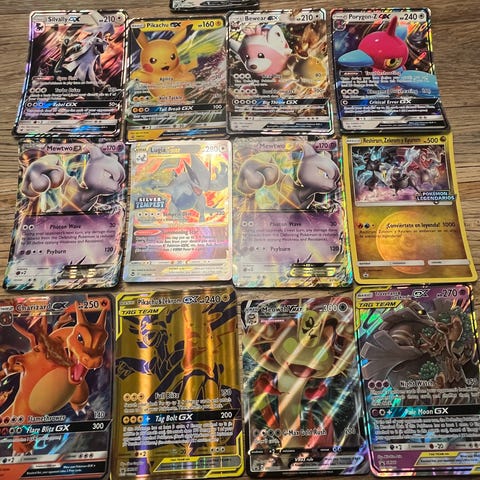 Pokémon samlekort blandet lot med forskellige EX-, GX- og Mega-kort. Kortene viser flere kendte Pokémon-figurer i fuld art og holografisk design. Lotten indeholder mange forskellige motiver og typer, velegnet til samling eller udbygning af eksisterende samling. Antal, sprog og specifikke serier fremgår af billederne og kan tælles eller gennemgås nærmere derfra.