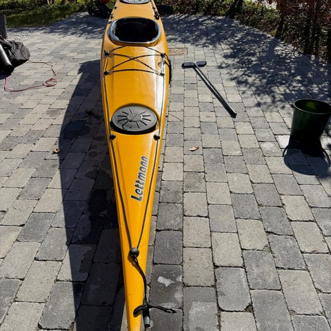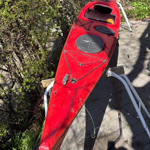 2 Hasle havkajakker i gul plastik med pagajer, vægbeslag og tagbeslag sælges for 5.000 kr. Den ene kajak er 5 meter og har fast ror. Den anden er 4,6 meter og har sænkbart ror. Begge er med 2 vandtætte lastrum, et foran og et bagved, hvor der er plads til både bagage og madpakker. Kajakkerne kan ses i enten Hadsten (8370) eller Fuglsø (8420).