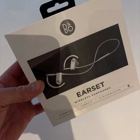 Bang & Olufsen Earset høretelefoner er trådløse in-ear høretelefoner med ørebøjler. Modellen leveres i original æske og med opbevaringspose, som ses på billederne. Earset er designet til at sidde fast omkring øret og egner sig til daglig brug, pendling og lignende aktiviteter, hvor der ønskes stabil pasform og trådløs lyd. Yderligere tekniske specifikationer fremgår af produktæsken på billederne.