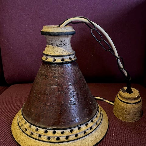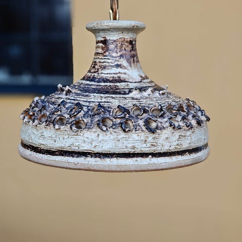 Flot Retro Keramik Loftlampe med unikt mønster og gennemgående huller der giver en hyggelig belysning, det er kæde på den men den trænger til evt udskiftning