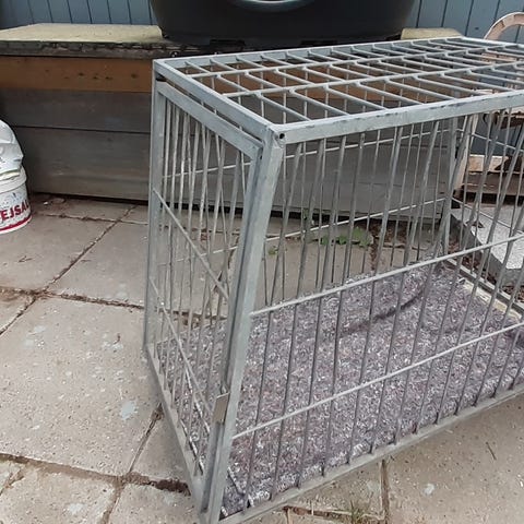 Meget solidt hundebur i metal, måler H 61,5 xB 44,5x D 59 cm.