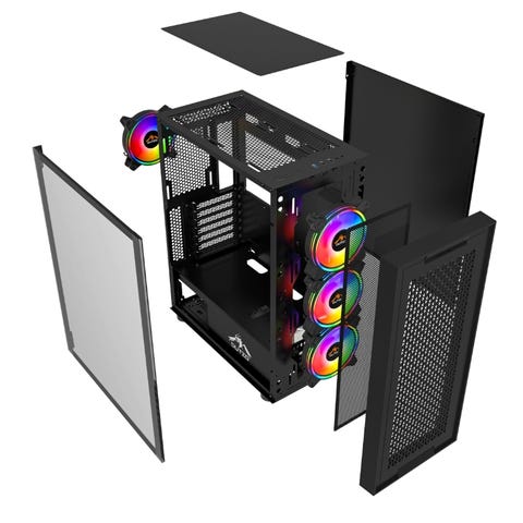 Miditower, ATX, uden strømforsyning - understøtter ATX strømforsyning (op til 180mm lang), front med 2x USB 3.2 Gen 1, 1x USB 3.2 Gen 2 Type C & lyd tilslutninger, 4 x 2.5" / 2 x 3.5" drev pladser, vandkølingsplads: understøtter op til 360mm radiator, max CPU køler højde: 170 mm, max grafikkortlængde: 43 cm, medfølgende kabinetkølere: 3x 120mm front, front panel: mesh, side vindue: tempered glass, farve: sort
