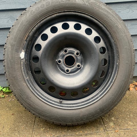 Skal fremover kun have helårsdæk. Derfor har jeg disse stålfælge der passer til Skoda Enyaq/VW id4-5/Audi q4-q5. Plastkapsler (VW) medfølger.