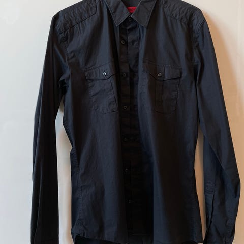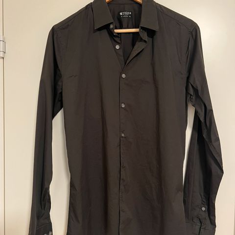 Lækker mørk skjorte fra Tiger of Sweden Jeans i størrelse Medium. Den har et tidløst og minimalistisk look, som gør den perfekt både til hverdag og pænere brug.