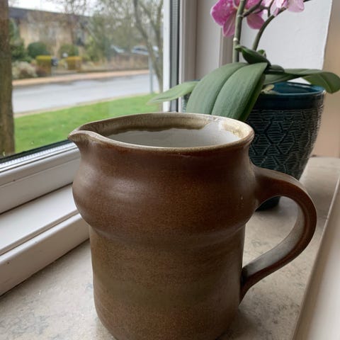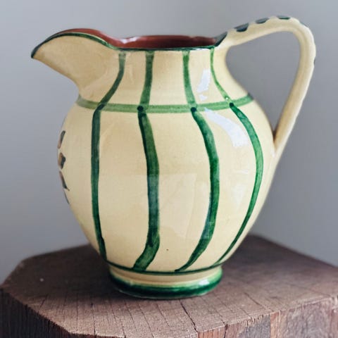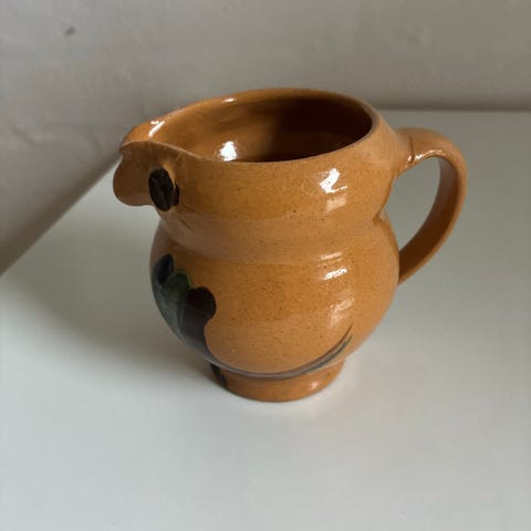 Keramik kande i gul glasur med patina H 14 Ø 9 cm