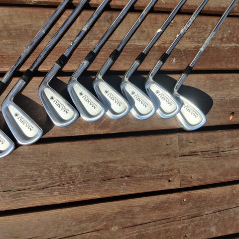 Alle jern i samme mærke og nye og skindende og ubrugte. Se foto7784-87.