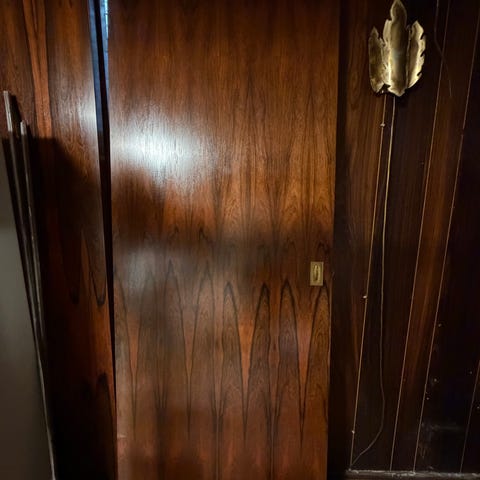 Skydedør i træ som er lavet på mål hos en snedker. Døren er monteret i en kvalitetsskinne foroven og med styring/nedføring forneden. Velegnet som rumadskillelse eller garderobedør i bolig eller lignende indendørs anvendelse.