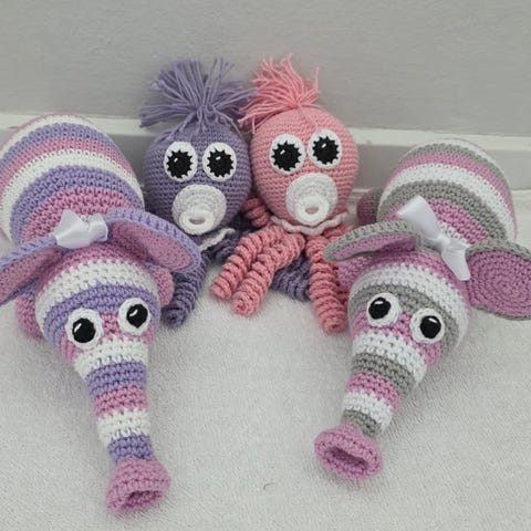 Denne hjemme hæklede bamse er lavet af acryl og uld og vat som fyld og er helt ny Den er 22cm lang
