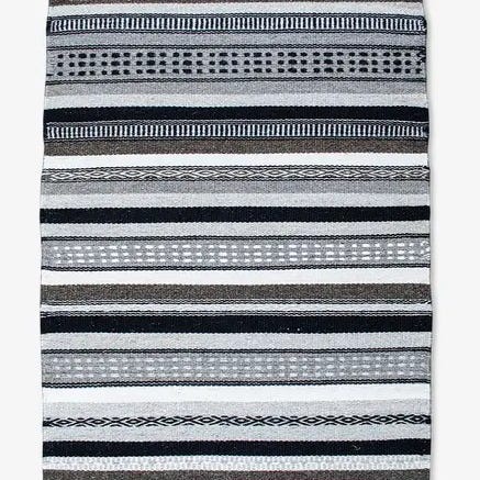 Tæppet har farven Ocean Tint, som fremstår som en blålig tone med lys bund. Vævet overflade med kant i mørkere blå.