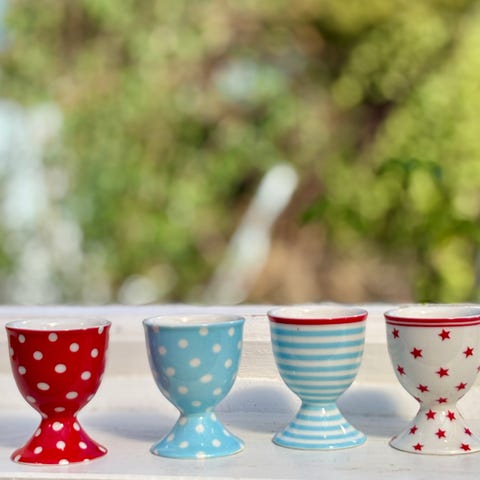 GreenGate stel krus æggebægre og kande mønstret porcelæn