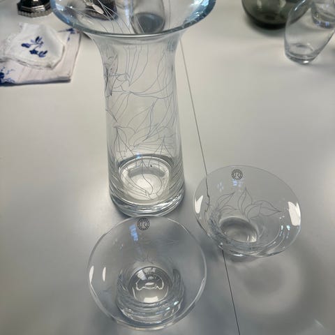Rosendahl vase i klart glas med indgraveret blomsterdekoration.