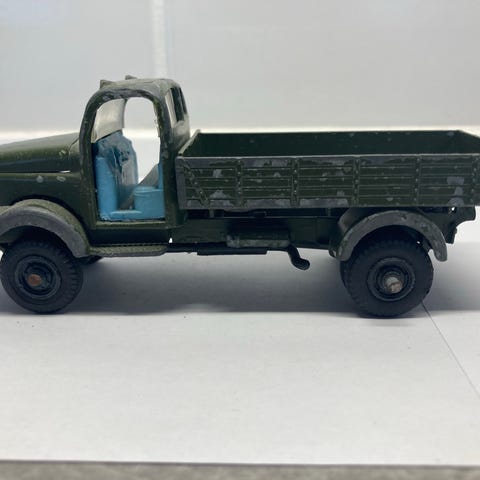 Bilen er renoveret i fronten og mangler et dæk på hvert sæt baghjul. De bevægelige dele er intakte og fungerer som de skal.