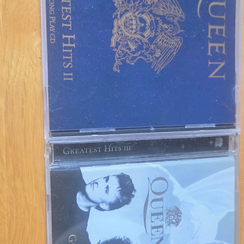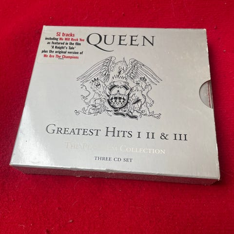 Original Queen Greatest Hits CD album med opsamling af bandets mest kendte numre. Standard jewelcase med cover og trackliste på bagsiden.