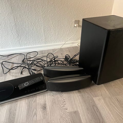Yamaha højttalersæt med gulvhøjttalere og subwoofer i sort. Sættet består af to slanke gulvhøjttalere, to mindre baghøjttalere, en centerhøjttaler samt en aktiv subwoofer. Højttalerne er udført i sort finish. Subwooferen har bagpanel med strømtilslutning, volumen- og frekvensregulering samt indgang til tilslutning til forstærker eller receiver. Velegnet til brug i hjemmebiograf eller stereoanlæg, hvor der ønskes et komplet surround- eller flerkanalsopsætning med matchende højttalere og subwoofer fra samme producent.