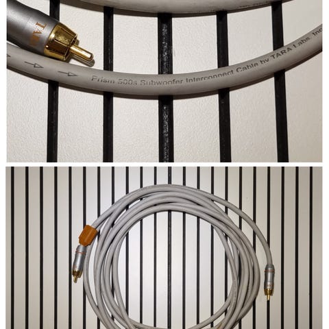 Subwoofer/ RCA lydkabel i blå farve. Kablet har RCA-stik i begge ender og er egnet til tilslutning af lydudstyr som forstærkere, cd-afspillere eller andre enheder med RCA-indgange eller -udgange. Yderkappen er i blå plast, og stikkene er metal med isolering omkring tilslutningen.