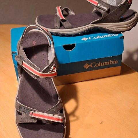 Sandalerne har justerbare remme over forfod og om hælen for bedre pasform. Farven er grå med mønstrede remdetaljer. Ydersålen er lys og mønstret for bedre fodfæste. Velegnet som hverdagssandal eller til let udendørs brug i varme måneder.