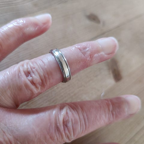 Står i den= OB2282 M80189M + hvem der har lavet den og hvor. Men ingen str. ca 2. Cm i omkreds.