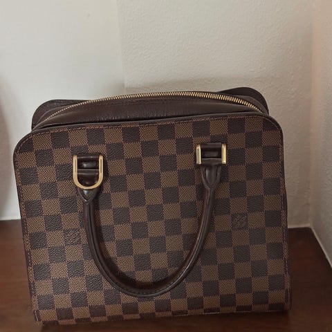 Farve: Klassisk brun/mørk tern med guldfarvet hardware