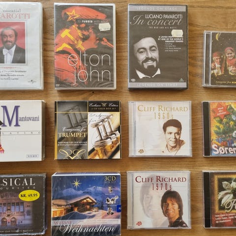 The Music of Greece / Spain / Italy CD-samling med tre musik-cd’er. Sættet indeholder tre titler: "The Music of Greece", "The Music of Spain" og "The Music of Italy". Hver cd præsenterer musik fra det pågældende land. På bagsiden af "The Music of Spain" er der liste med 20 numre, blandt andet "Espana Cani", "Maria Isabel", "La Bamba", "Granada", "Amor Amor", "Aranjuez, Mon Amour" og "Y Viva Espana". Cd’erne er i standard plastikcover og egner sig til afspilning på almindelige cd-afspillere.