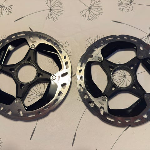 Sælger 2 stk. Shimano Ultegra bremseskiver i 140 mm. Perfekte til landevej eller gravel – lette og med stærk bremseevne.