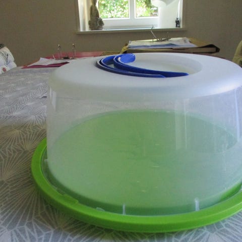 Tupperware kageboks med låg blå hvid